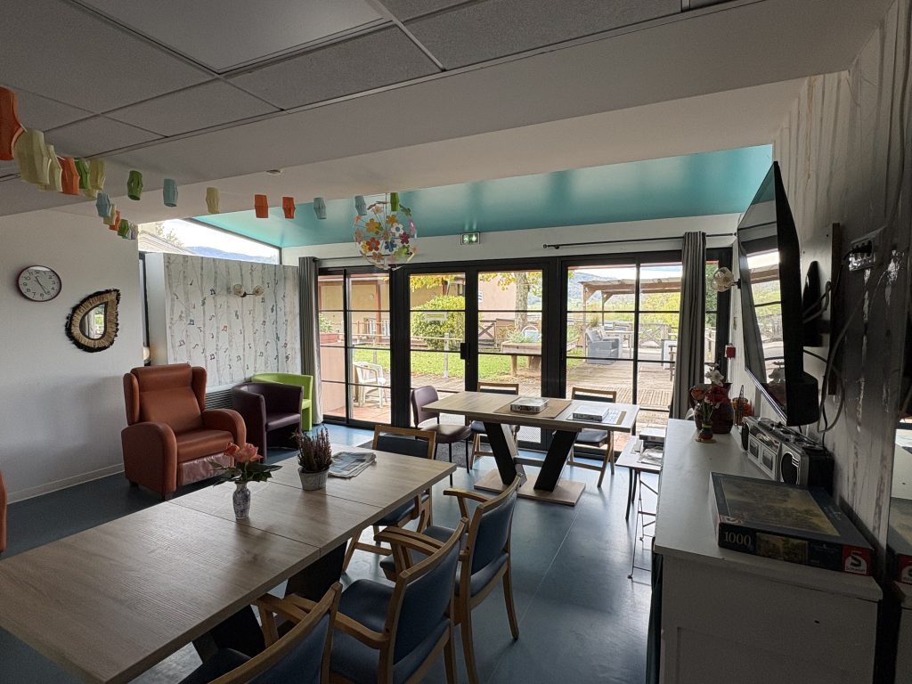 Les temps de repas sont également des temps privilégiés et conviviaux, où les résidents renouent avec une vie “comme à la maison” et maintiennent leurs capacités par la pair-aidance (mettre le couvert, servir son repas, servir les autres…).